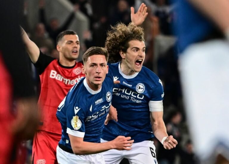O Arminia Bielefeld venceu o Bayer Leverkusen por 2 a 1, nesta terça-feira (1), na Schüco Arena, em Bielefeld, e garantiu uma inédita vaga na final da Copa da Alemanha.
