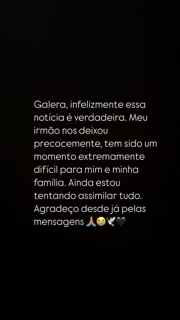 O jogador se manifestou nas redes sociais lamentando a morte do irmão.