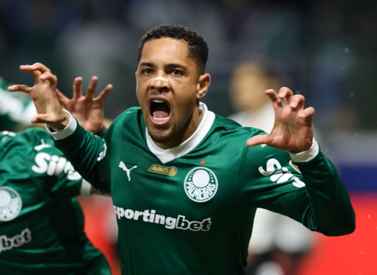 No segundo tempo, o Palmeiras manteve a pressão e encontrou o gol de empate logo com 5min. Piquerez pegou sobra na esquerda e cruzou na área, Vitor Roque cabeceou, Armani espalmou, o próprio camisa 9 pegou o rebote e mandou para a rede.