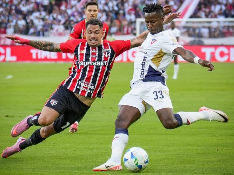 A LDU venceu o São Paulo por 2 a 0, nesta quinta-feira (18), no estádio Casa Blanca, em Quito, no jogo de ida das quartas de final da Libertadores.