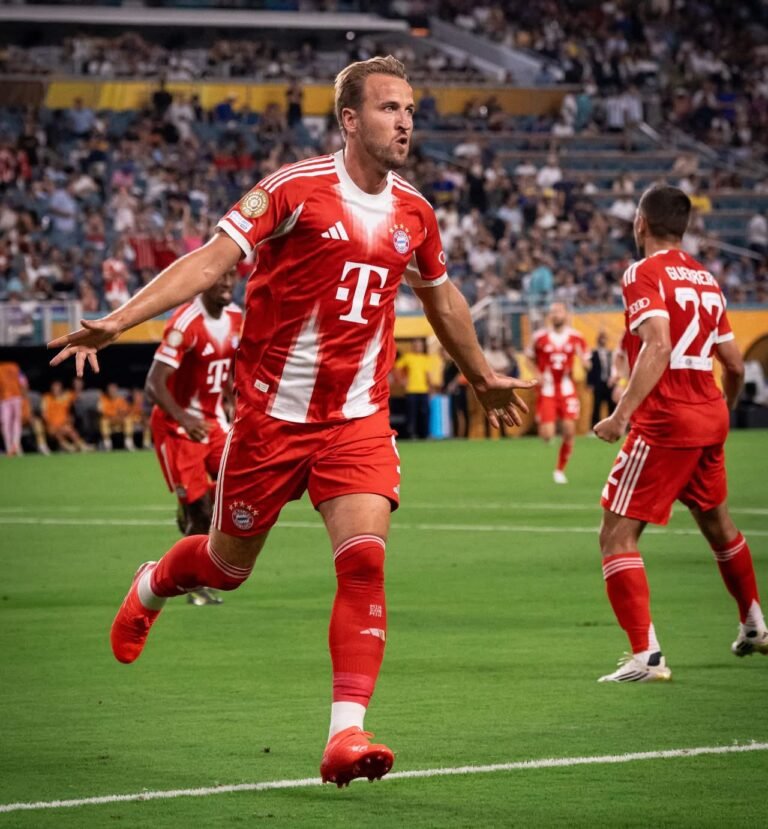 Porém, aos 17min, o Bayern marcou de novo, e desta vez valeu. Harry Kane pegou sobra na grande área e tocou de bico, abrindo o placar em Miami.