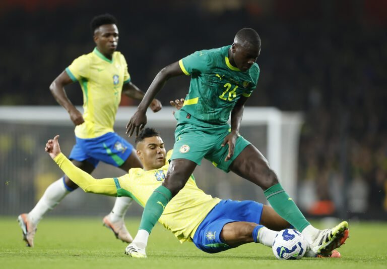 O Brasil respondeu aos 9min, também em um vacilo da defesa senegalesa, que só não resultou em gol porque Koulibaly se recuperou a tempo e travou a finalização de Rodrygo.